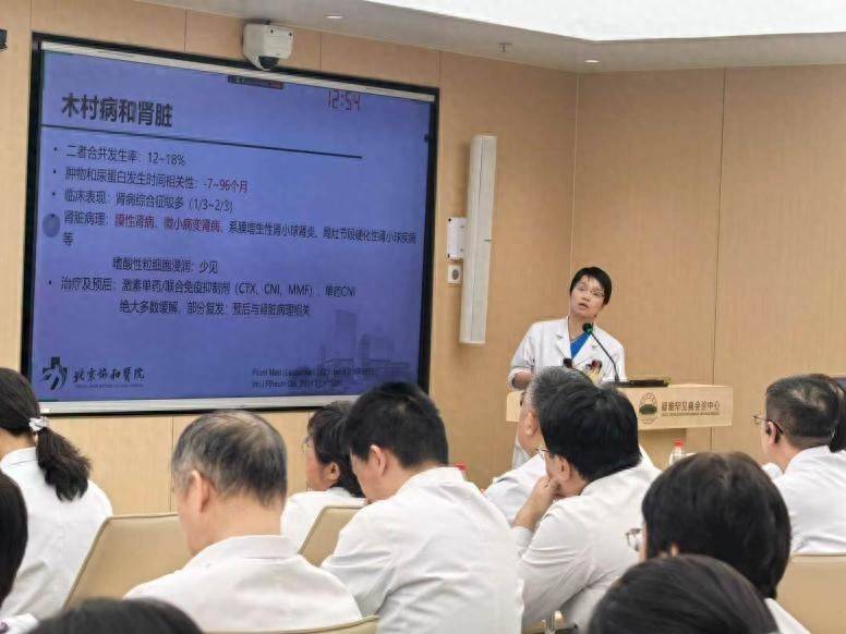 在北京协和医院罕见病会诊中心,北京协和医院肾内科主治医师胡蓉蓉对木村病进行汇报。受访者供图